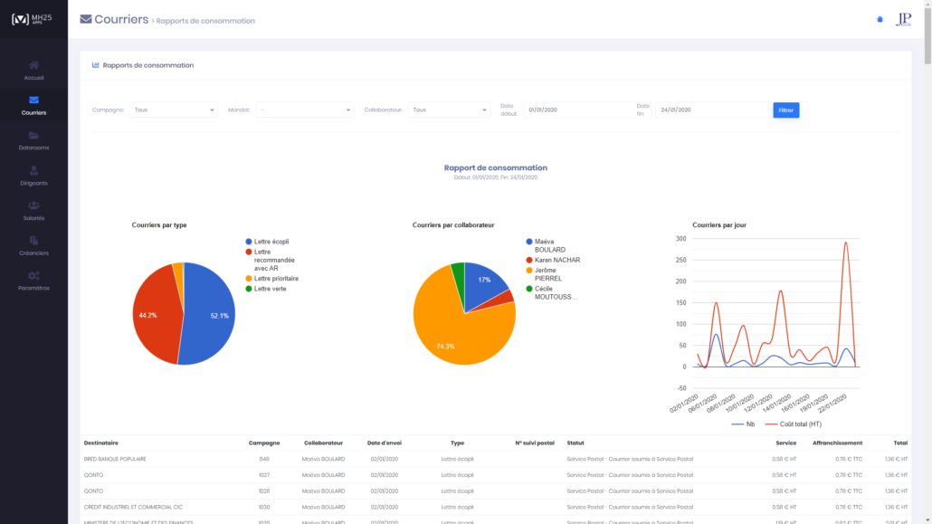MH25 CLOUD est un ensemble d’applications et de services dédiés aux Administrateurs Judiciaires et aux Mandataires Judiciaires permettant d’optimiser les méthodes de travail de votre étude, d’accroître la productivité du traitement de vos dossiers et mieux gérer l’activité de votre étude.